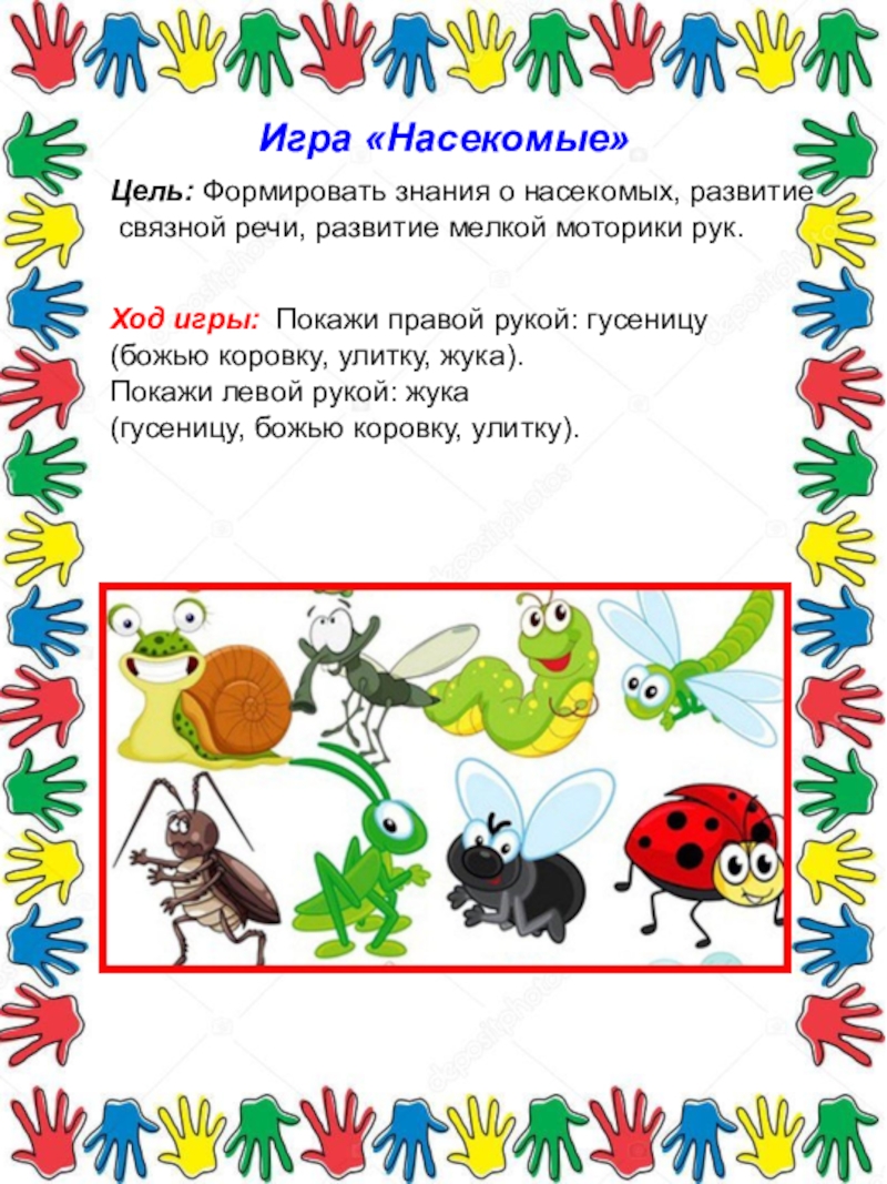 (божью коровку, улитку, жука).