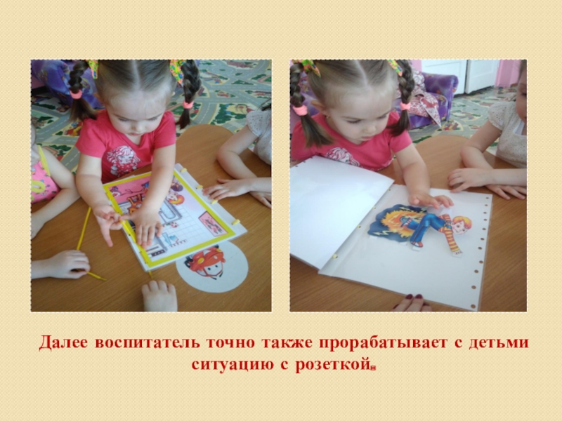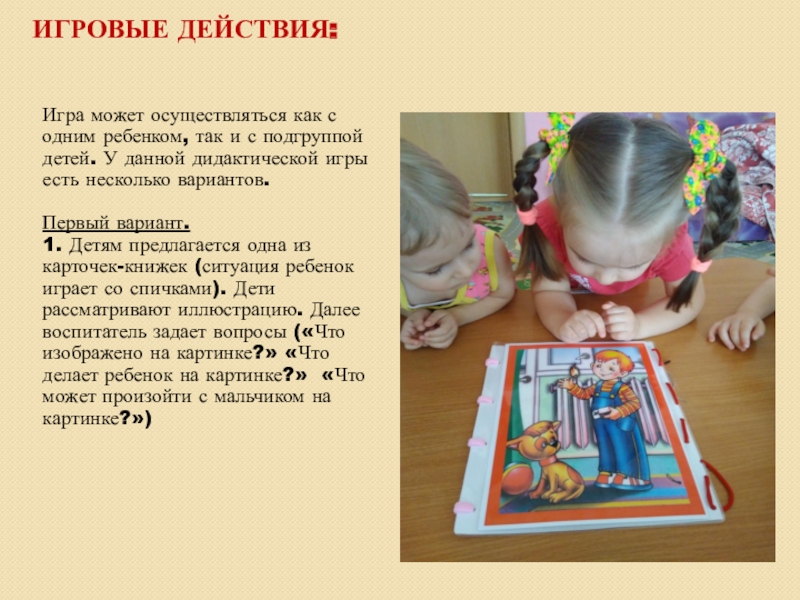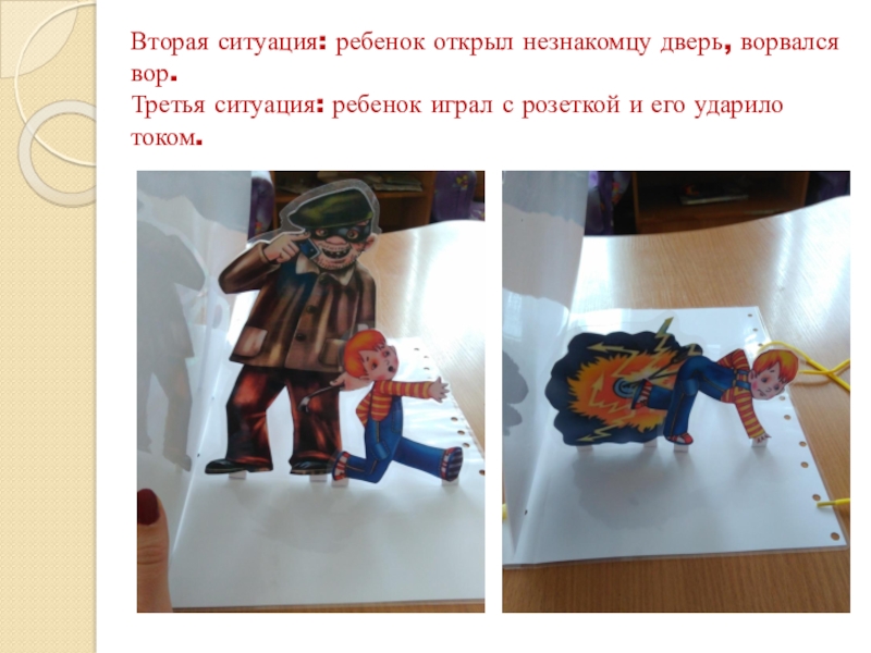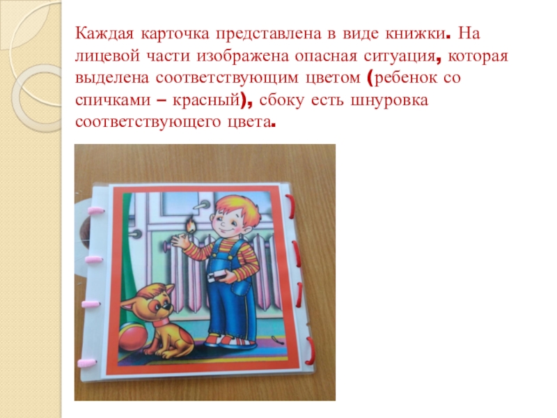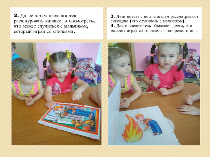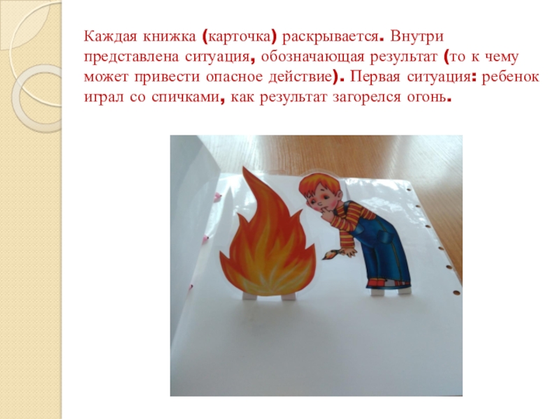 2. Далее детям предлагается расшнуровать книжку и посмотреть, что может случиться с мальчиком, который играл со спичками.