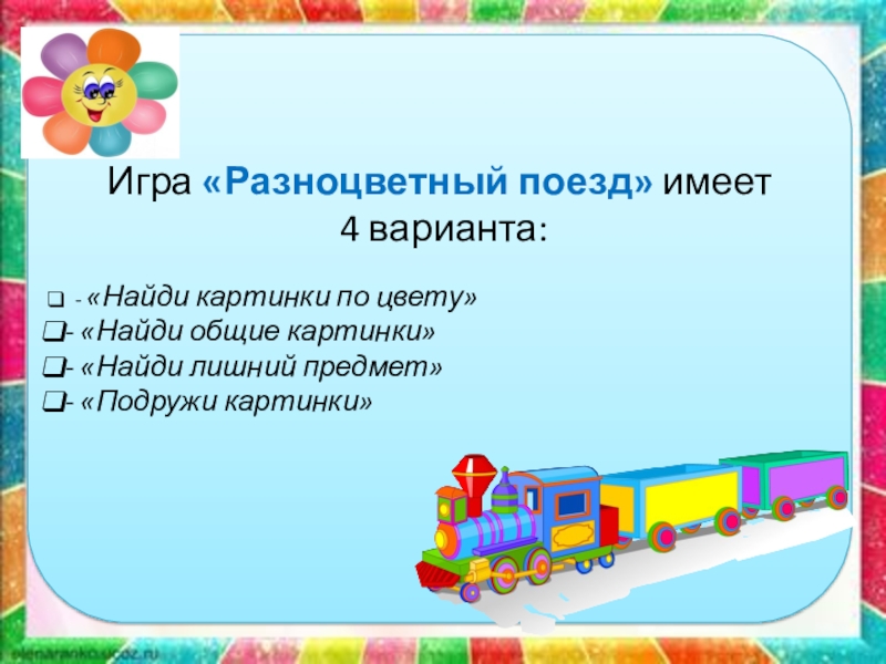 Слайд 3Игра «Разноцветный поезд» имеет