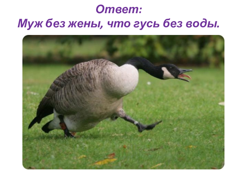 Ответ:Муж без жены, что гусь без воды.