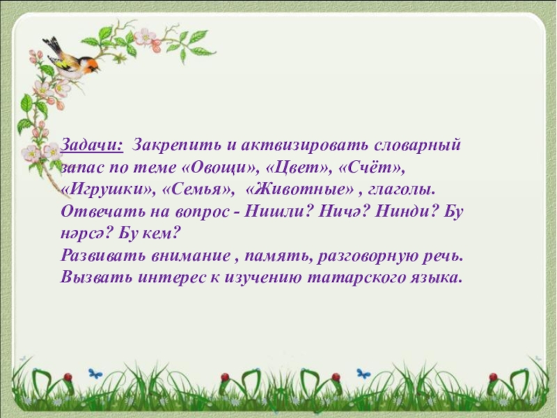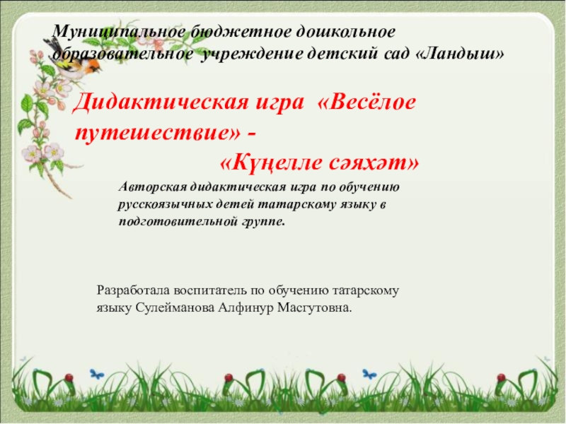 Разработала воспитатель по обучению татарскому языку Сулейманова Алфинур Масгутовна.