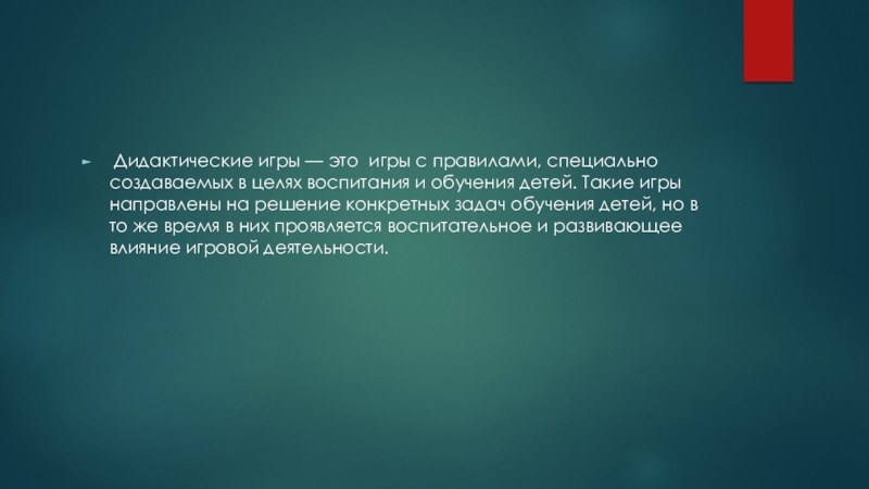 Слайд 2 Дидактические игры — это игры с правилами, специально создаваемых в целях