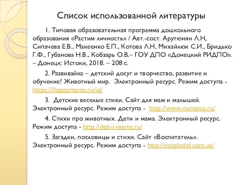 4. Стихи про животных. Дети и мама. Электронный ресурс. Режим доступа - http://deti-i-mama.ru/