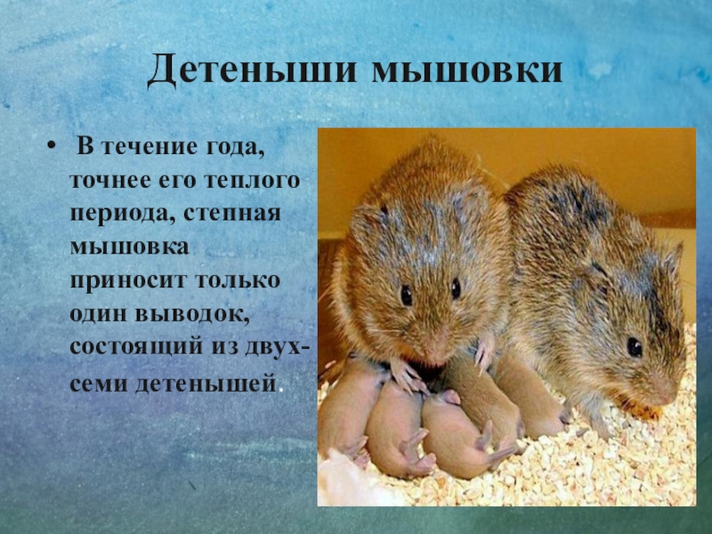В течение года, точнее его теплого периода, степная мышовка приносит