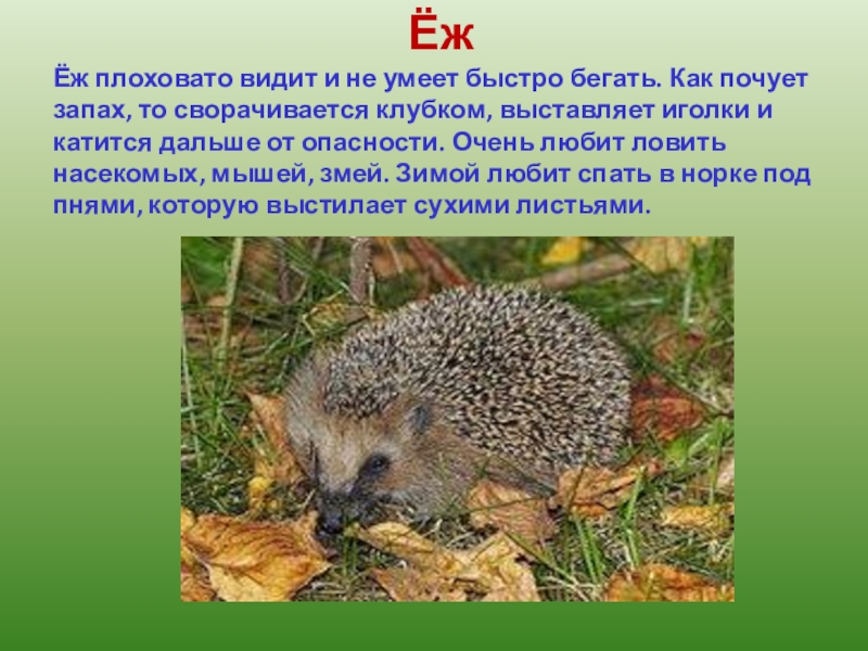 Ёж плоховато видит и не умеет быстро бегать. Как почует запах,