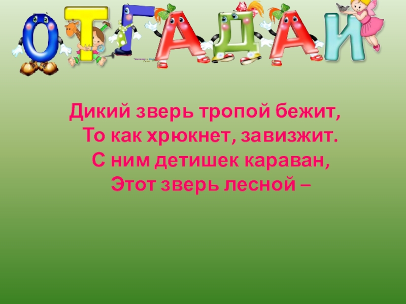 Дикий зверь тропой бежит, То как хрюкнет, завизжит. С ним детишек