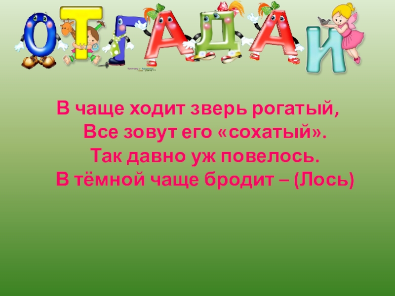 В чаще ходит зверь рогатый, Все зовут его «сохатый». Так давно уж повелось. В тёмной чаще бродит