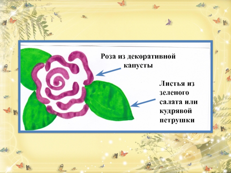 Роза из декоративной капустыЛистья из зеленого салата или кудрявой петрушки