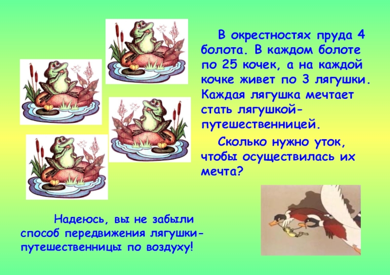 Надеюсь, вы не забыли способ передвижения лягушки-путешественницы по воздуху!