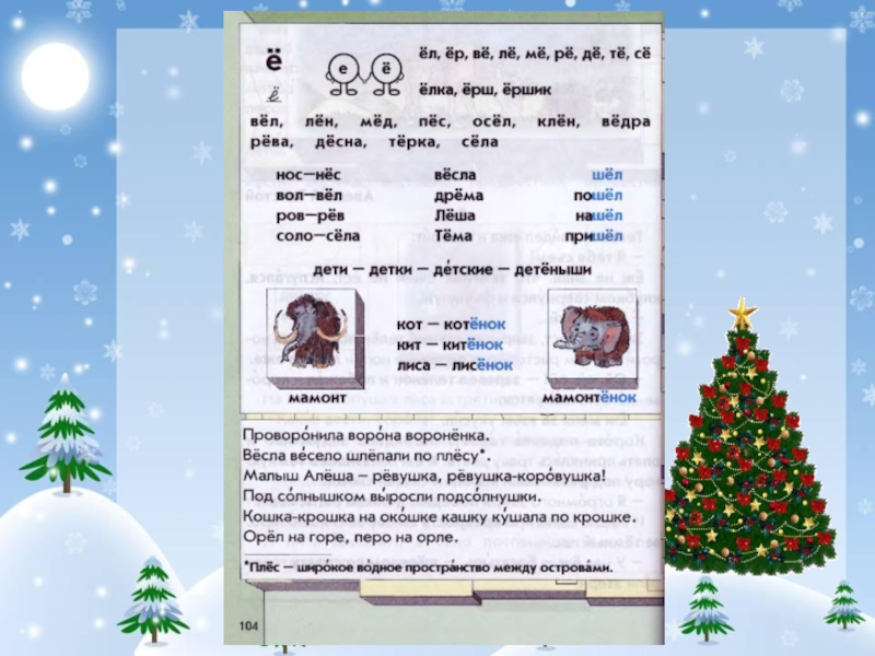 Ё Л-К А[ Й'О Л-К А ]2 слога, 4 буквы, 5 звуков