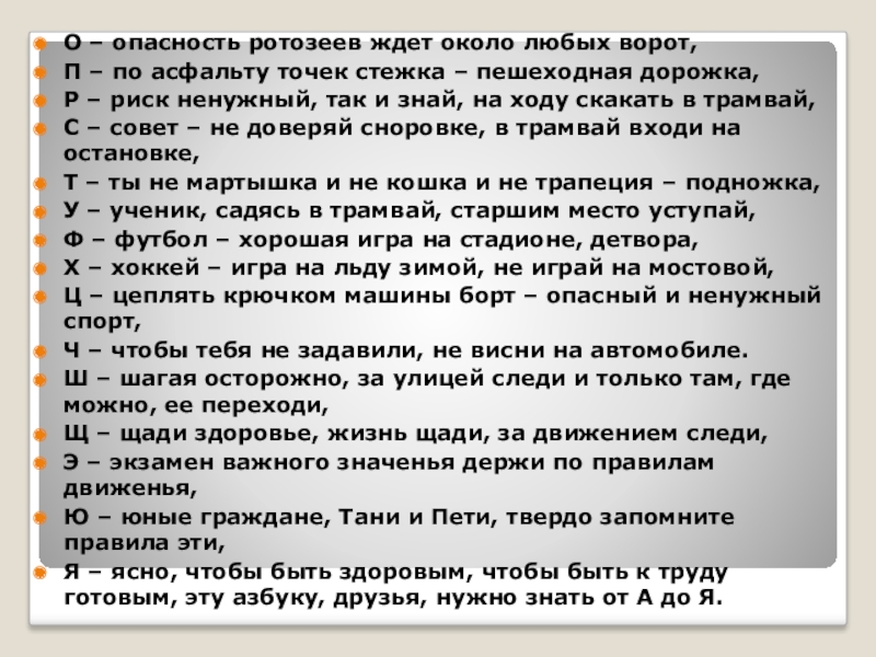 Ю – юные граждане, Тани и Пети, твердо запомните правила эти,