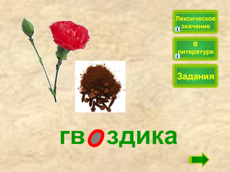 1.Душистый полевой и садовый цветок. 2.Пряность, употребляемая в кулинарном деле, представляющая собой высушенные почки тропического дерева, называемого гвоздичным.