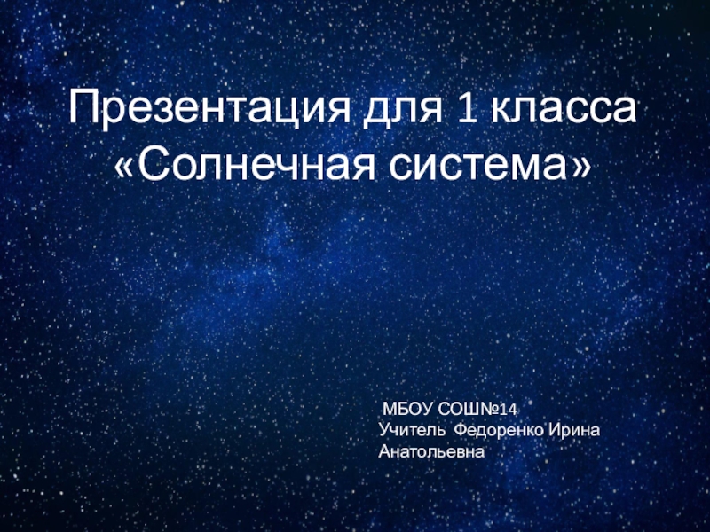 Презентация для 1 класса «Солнечная система»   МБОУ СОШ№14Учитель Федоренко Ирина Анатольевна
