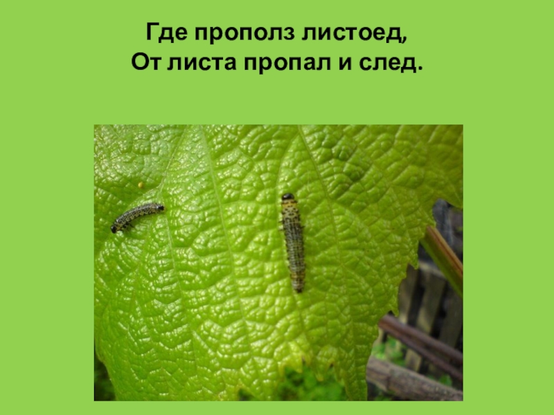 Слайд 5Где прополз листоед, От листа пропал и след.