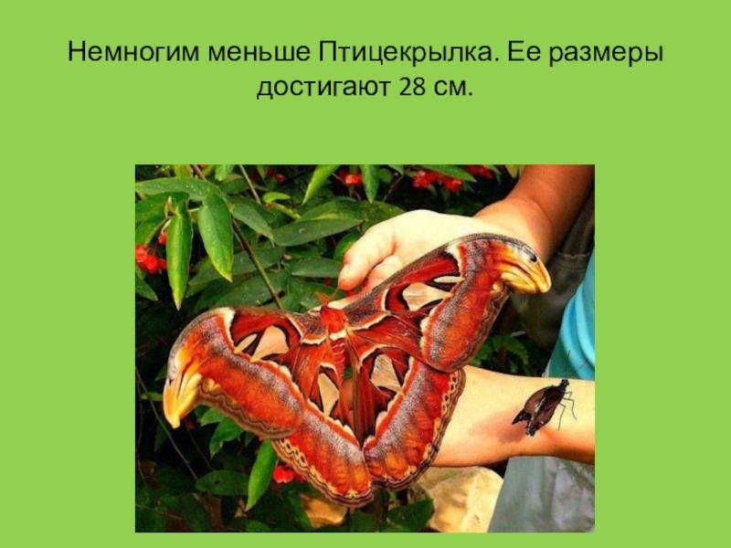 Слайд 12Немногим меньше Птицекрылка. Ее размеры достигают 28 см.