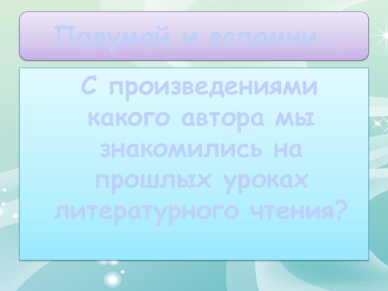 Подумай и вспомни… С произведениями какого автора мы знакомились на прошлых уроках литературного чтения?