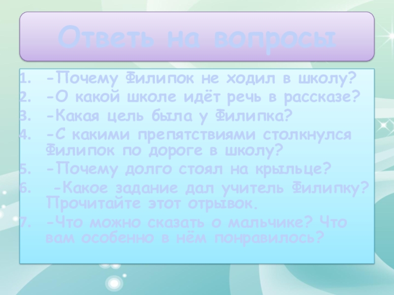 Ответь на вопросы-Почему Филипок не ходил в школу?-О какой школе идёт речь в рассказе?-Какая цель была у