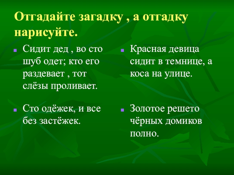 Красная девица сидит в темнице, а коса на улице.