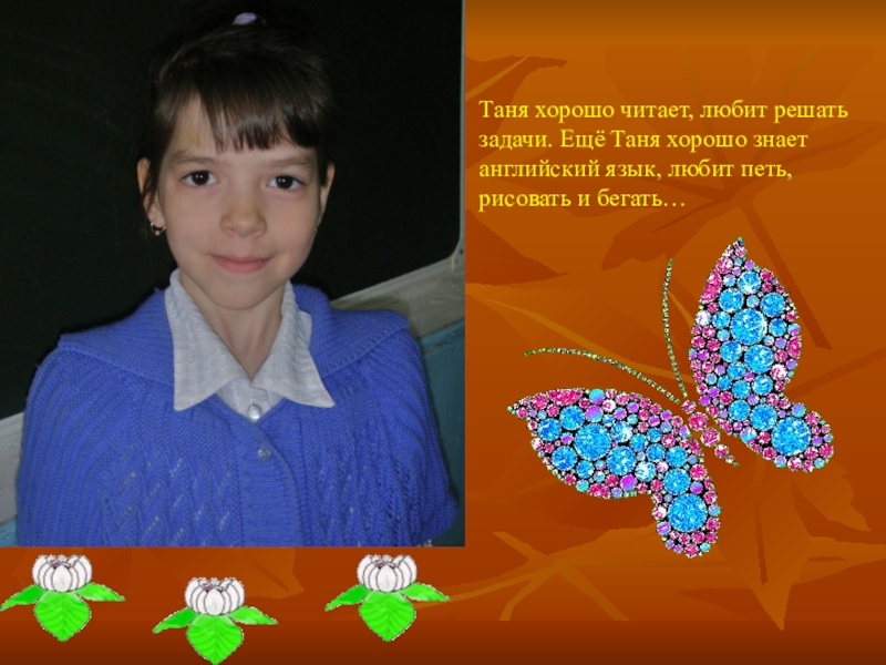 Слайд 17Таня хорошо читает, любит решать задачи. Ещё Таня хорошо знает английский