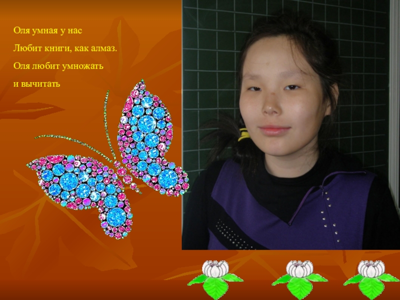 Слайд 13Оля умная у нас