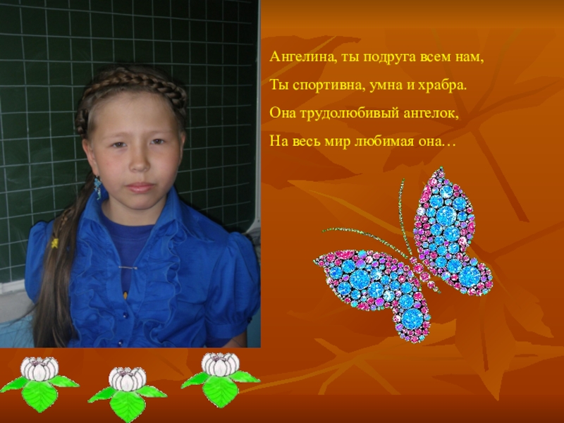 Слайд 6Ангелина, ты подруга всем нам,