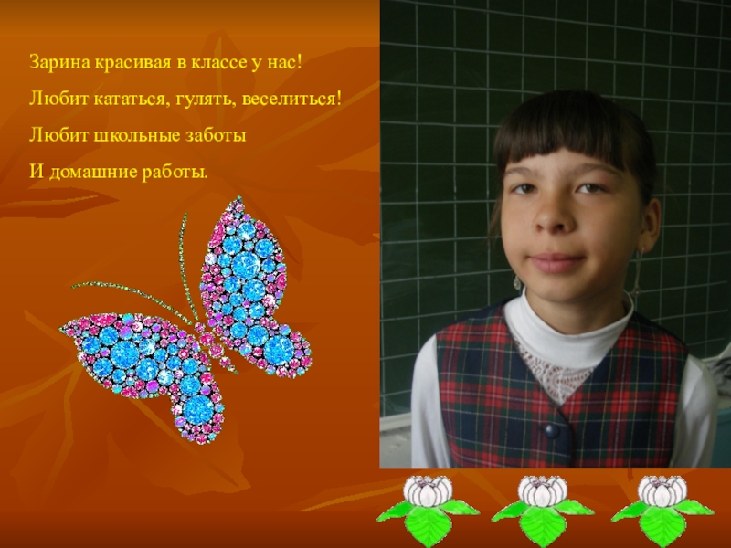 Слайд 12Зарина красивая в классе у нас!