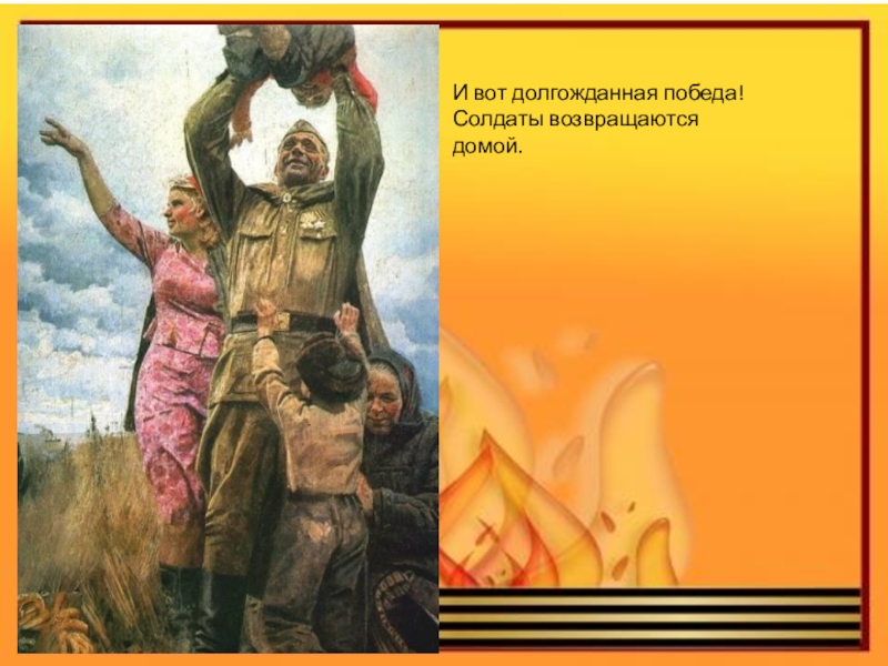 Слайд 24И вот долгожданная победа! Солдаты возвращаются домой.
