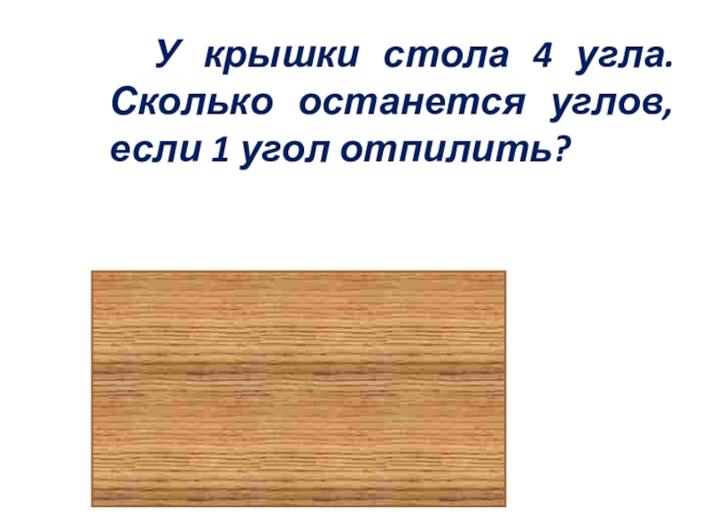 Слайд 36 У крышки стола 4 угла. Сколько останется углов, если 1 угол