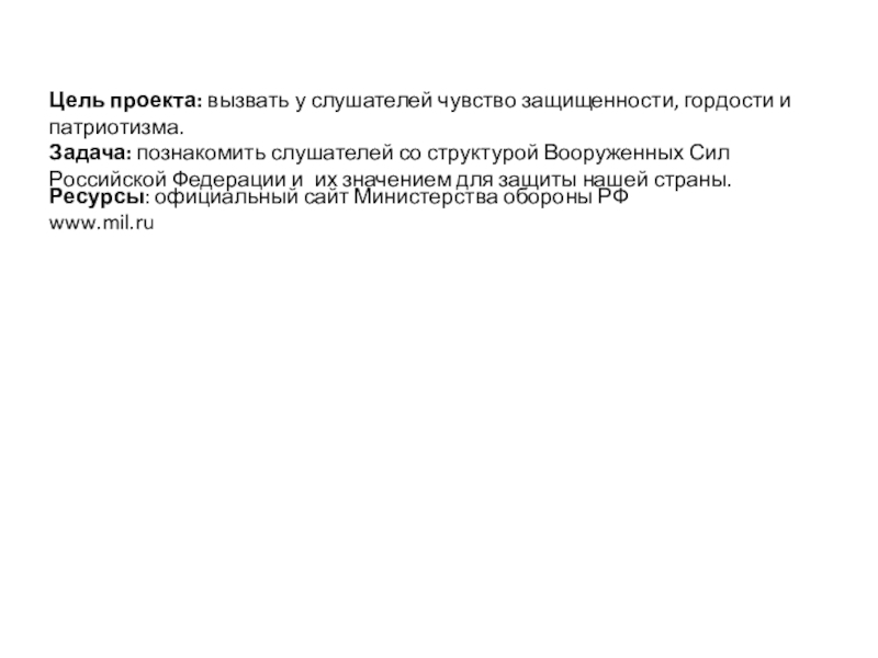Ресурсы: официальный сайт Министерства обороны РФ www.mil.ru
