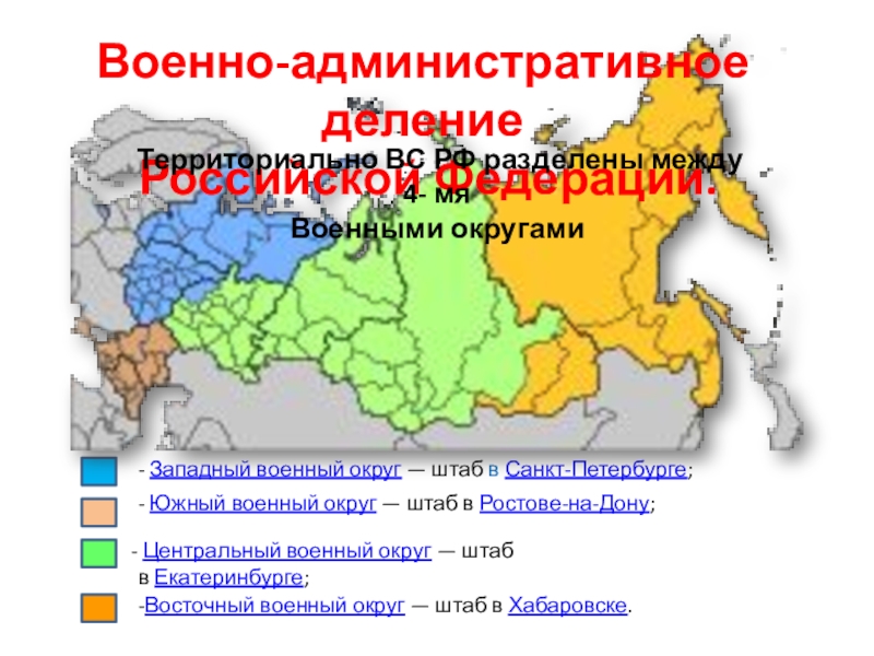 Военно-морской флот России состоит из четырех флотов и одной флотилии: Балтийского, Северного, Тихоокеанского и Черноморского и Каспийской флотилии.