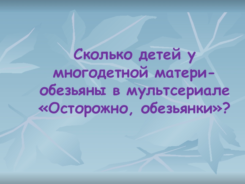 Слайд 10Сколько детей у многодетной матери-обезьяны в мультсериале «Осторожно, обезьянки»?