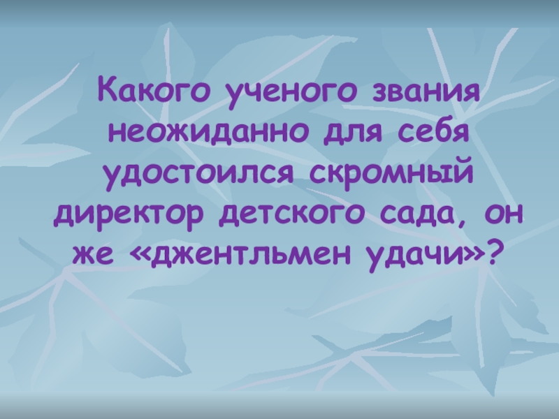 Слайд 20Какого ученого звания неожиданно для себя удостоился скромный директор детского сада,