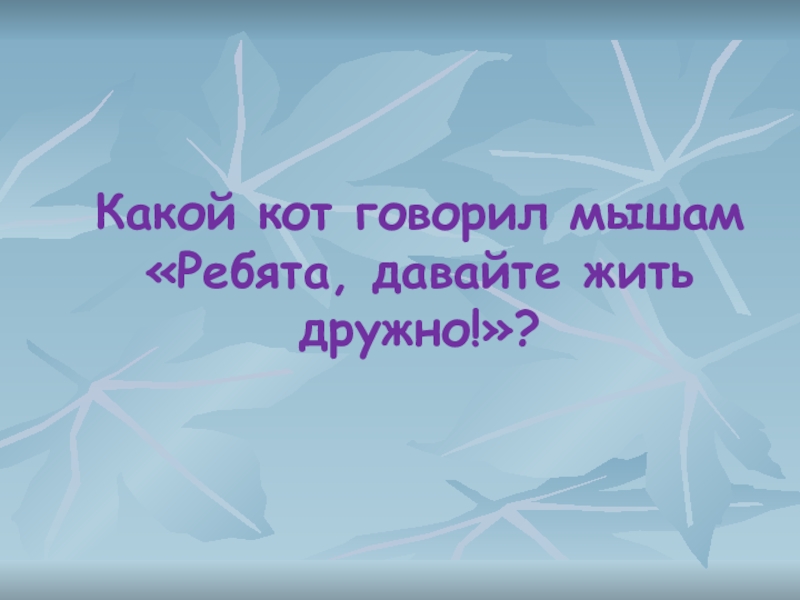 Слайд 24Какой кот говорил мышам «Ребята, давайте жить дружно!»?