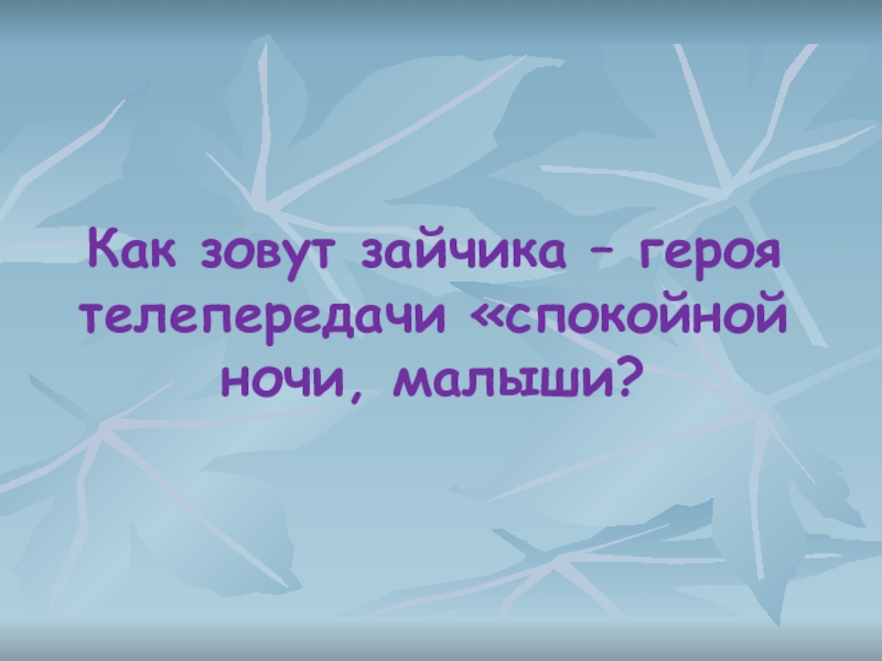 Слайд 26Как зовут зайчика – героя телепередачи «спокойной ночи, малыши?