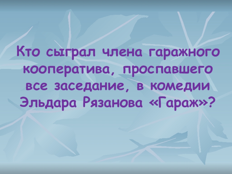 Слайд 22Кто сыграл члена гаражного кооператива, проспавшего все заседание, в комедии Эльдара