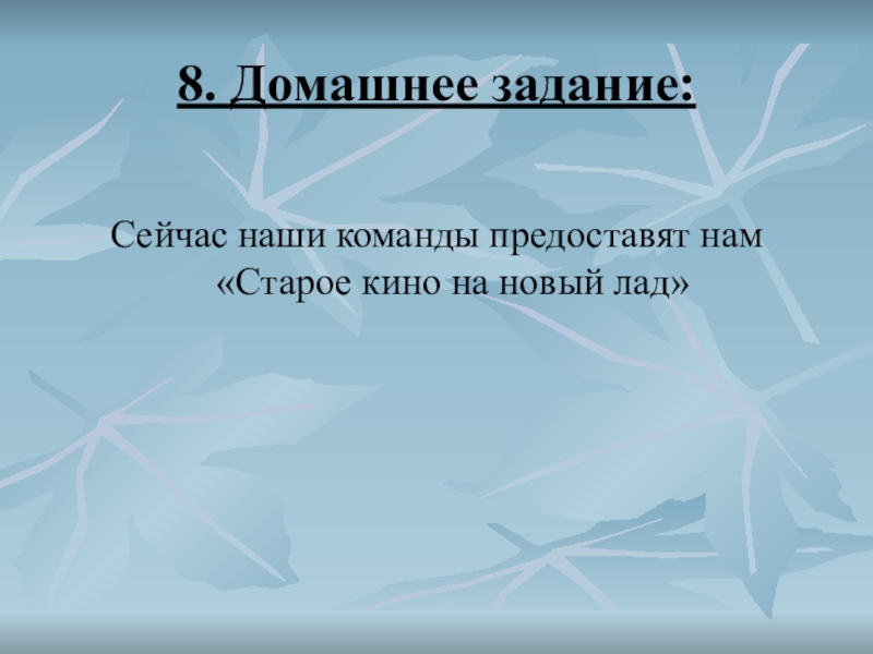 8. Домашнее задание: Сейчас наши команды предоставят нам «Старое кино на новый лад»