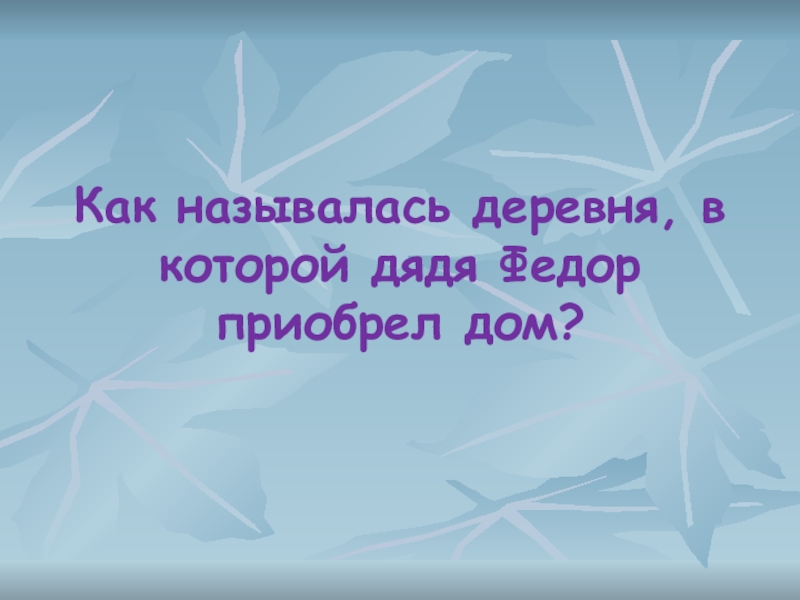Слайд 32Как называлась деревня, в которой дядя Федор приобрел дом?