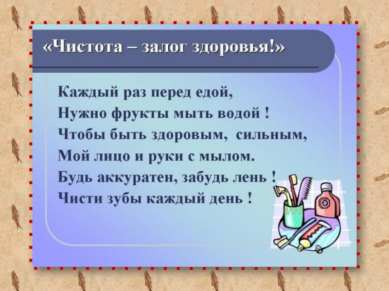 Презентация, доклад для детей 1мл.группа на темуЧистота-залог здоровья