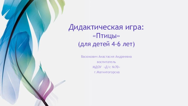 Дидактическая игра: «Птицы» (для детей 4-6 лет)Васюкович Анастасия АндреевнавоспитательМДОУ «Д/с №70» г.Магнитогорска