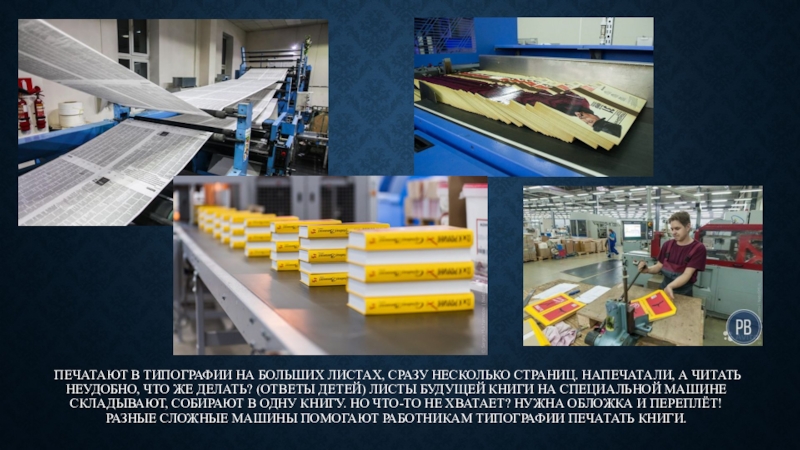 Слайд 9 Печатают в типографии на больших листах, сразу несколько страниц. Напечатали,