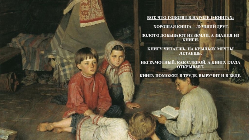 Слайд 16Вот, что говорят в народе о книгах: