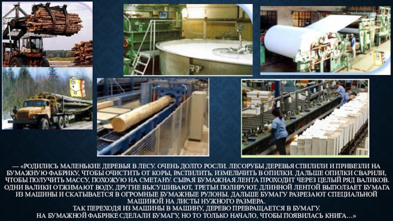На бумажной фабрике сделали бумагу, но то только начало, чтобы появилась книга…»