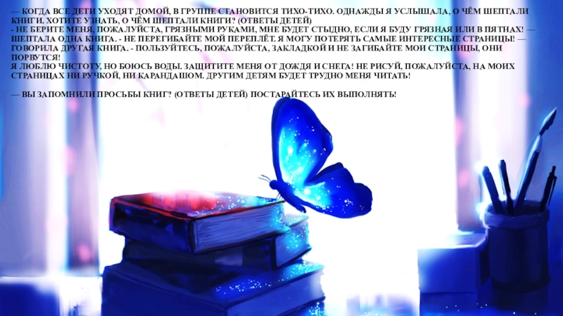 — Вы запомнили просьбы книг? (ответы детей) Постарайтесь их выполнять!