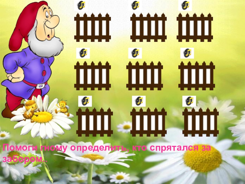 Слайд 2Помоги гному определить, кто спрятался за забором..