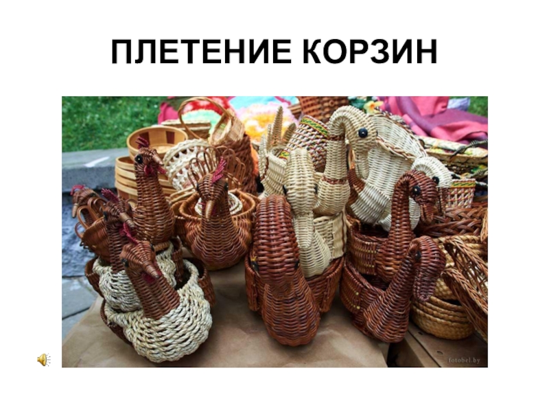 Слайд 13ПЛЕТЕНИЕ КОРЗИН