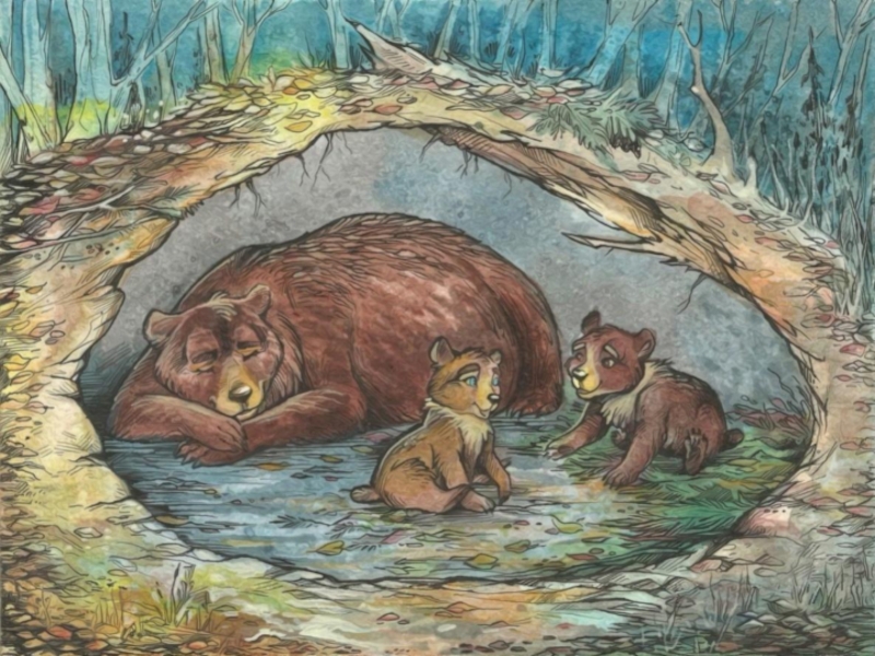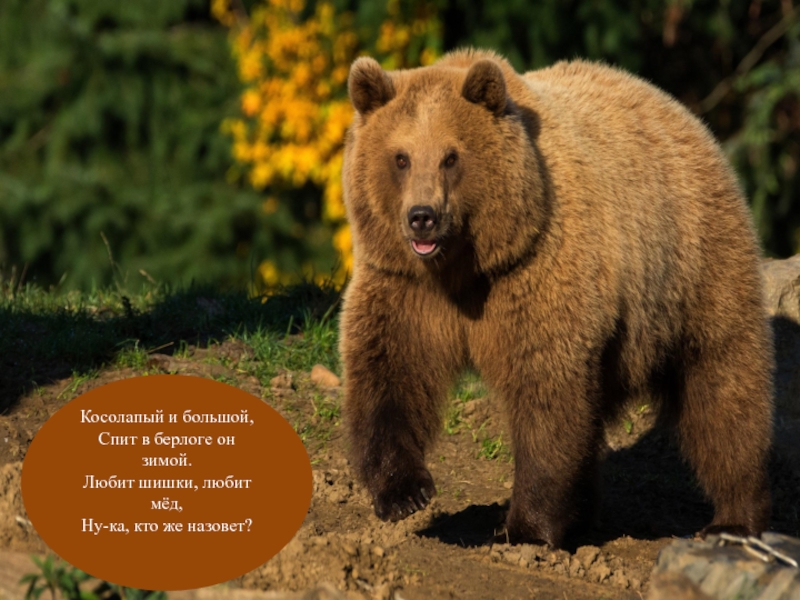 Слайд 15Косолапый и большой,  Спит в берлоге он зимой.  Любит шишки, любит мёд,  Ну-ка, кто