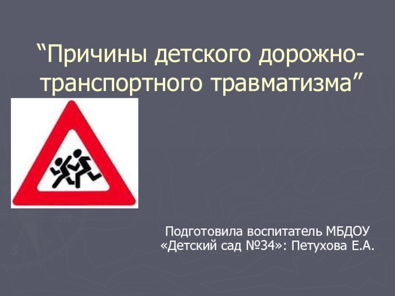 “Причины детского дорожно-транспортного травматизма”Подготовила воспитатель МБДОУ «Детский сад №34»: Петухова Е.А.