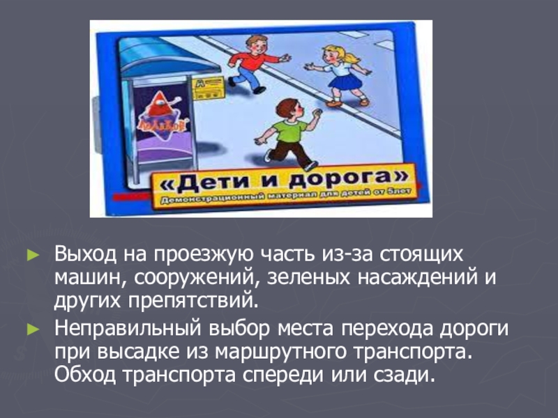 Неправильный выбор места перехода дороги при высадке из маршрутного транспорта. Обход транспорта спереди или сзади.