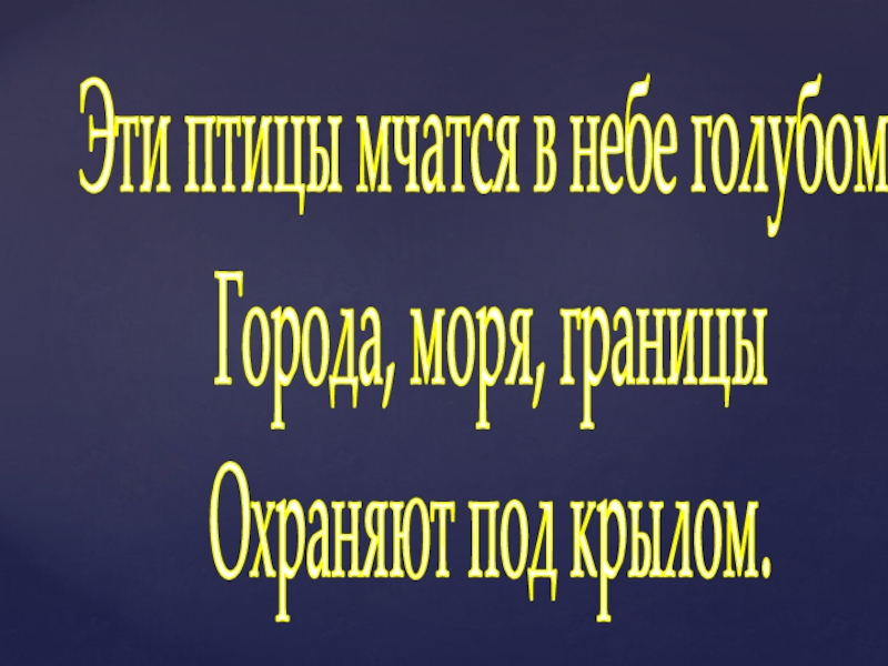 Эти птицы мчатся в небе голубом.Города, моря, границыОхраняют под крылом.