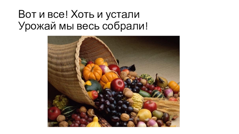 Вот и все! Хоть и устали  Урожай мы весь собрали!